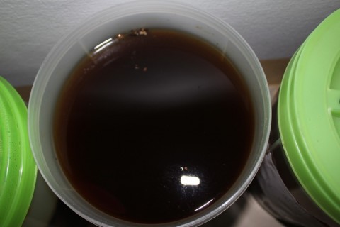 ทดลอง เอา ลูกยอ สมอ และมะขามป้อม มาเลี้ยงด้วยน้ำผึ้งต่อในอัตราส่วนระหว่าง 1:1:5 กับ 3:1:5 (น้ำหมัก:น้ำผึ้ง:น้ำ) ปรากฎ ว่า 1:1:5 จะกินง่ายกว่า 3:1:5 รู้สึกว่า ยังเข้มข้น ยิ่งมะขามป้อมด้วยแล้ว ยังออกรสเฝื่อน ๆ อยู่มาก ...... ยังเหลือมังคุด กับแอปเปิ้ล ว่าจะเอามาเลี้ยงต่อเหมือนกัน เวลากินจะได้กลืนง่าย ๆ หน่อย อิอิ หลังจากนำมาเลี้ยงต่อด้วยน้ำผึ้ง น้ำหมักจะใส ไม่ขุ่นอยู่น่ากินกว่าในถังครับ ส่วนตะกอนจะไปนอนอยู่ที่ก้นขวด