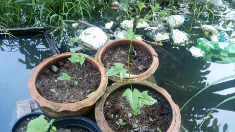 บวบของพี่แจ้วกำลังงามและคงจะออกดอกเร็วนี้ ก็คงจะไม่รอดเพราะลำต้นจมน้ำอยู่ แต่จะพยายามช่วยเหลือมันให้ได้