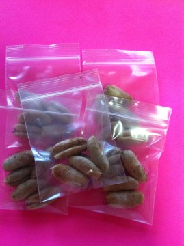 เวลาจะเพาะต้องแช่น้ำทิ้งไว้ ๒ คืน จากนั้นเทน้ำทิ้งให้หมด นำเมล็ดที่ยังเปียกใส่ในขวดน้ำ หรือขวดโหล ปิดฝาให้สนิท นำไปตั้งบริเวณที่ร้อนอบอ้าว เนื่องจากช่วงนี้ไม่ค่อยมีแดด เลยนำมาตั้งไว้ข้างๆ เตาแก๊สค่ะ
