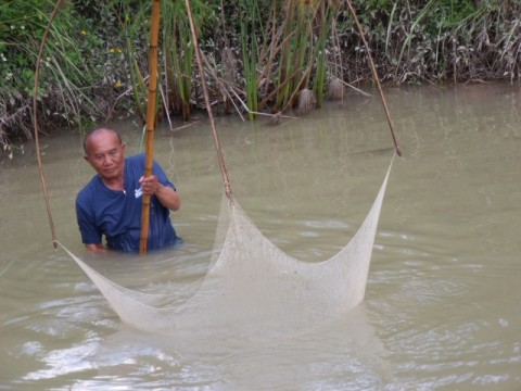 ก่อนจะช้อนกุ้ง ก็เหวี่ยงแหก่อน ได้ปลาตะเพียนมา 2 ตัว (ไม่ได้ถ่ายรูป)