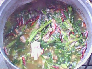 วิธีทำ นำกระเทียม หอมแดง เกลือป่น โขลกหยาบๆ นำถั่วเน่าแห้งยางไฟอ่อนๆให้หอม แล้วนำมาโขลก ต้มกระดูกหมูให้เปี่อย นำเครื่องที่โขลกไว้ใส่ลงไป ปรุงรสด้วยคนอร์ น้ำมะขามเปียก ให้ได้รสชาติตามที่เราชอบ จากนั้นใส่ผักกาดแล้วเคี่ยวต่ออีกนิดหน่อย ก่อนยกลงจากเตาให้ใส่กระเทียมเจียว พริกทอด เป็นอันเรียบร้อย ตักเสริฟได้