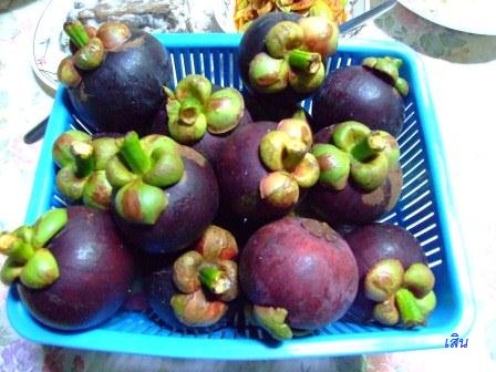ตามด้วยมังคุดของคนอื่นที่ซื้อมา เพราะของเองยังไม่สุก แล้วซดน้ำอัญชันปิดท้ายคนละแก้วครับ