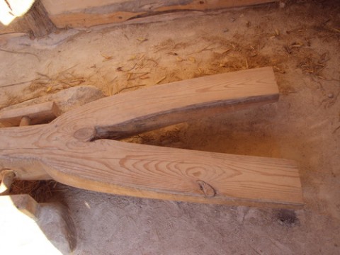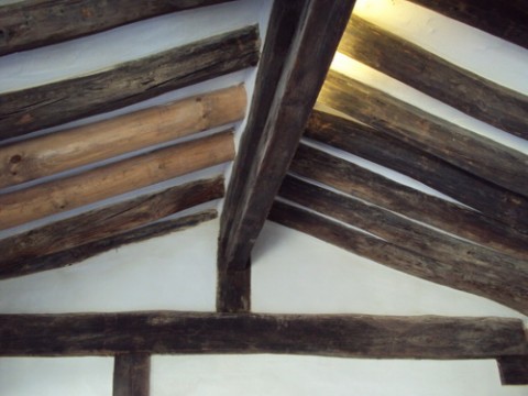 โครงสร้างหลังคา เป็นไม้ท่อนกลมเพื่อรับน้ำหนักได้มาก (อาจเอาไว้รับน้ำหนักหิมะ)