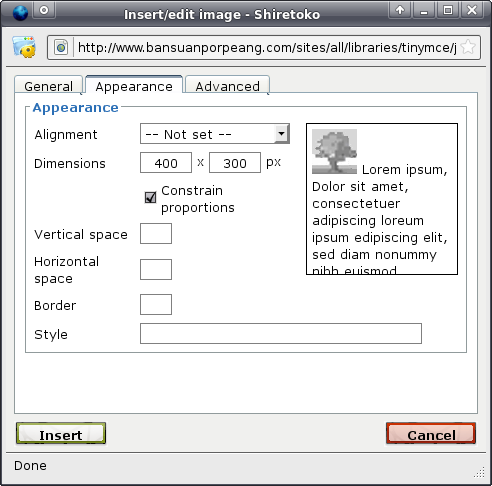 เมื่อปรับเรียบเร้อยแล้วให้กดปุ่ม "Insert"