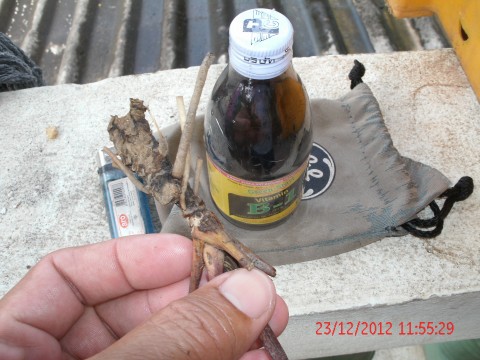 ชุบน้ำยาอีกรอบรัดใว้ด้วยเชือกเอาส่วนรากใส่ลงไปในขวดสะอาด