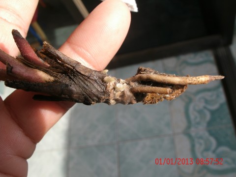 ก็เลยตัดสินใจจับขึ้นเขียงตัดรากที่เน่าทิ้งเหลือใว้ส่วนที่คิดว่ายังดีใว้เหลือใบดีของเขาใว้