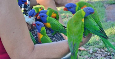 ตอนแรกๆไม่กล้ามาใกล้หรอกค่ะ แต่พอเอาเมล็ดทานตะวันล่อเลยมาทีละตัว 2 ตัวก่อน พอหลายวันเข้ามาเป็นฝูง บางวันมา 50-60 ตัว ภาพที่ป้าเหนือให้อาหารข้างบนป้าเหนือเอาใส่ถาดมือจับไว้ใต้ถาดค่ะ เพราะกลัวจิกมือมีคนบอกว่าถ้าจิกมือมือขาดเลย ปากงุ้มเหมือนนกแก้ว ตัวใหญ่ค่ะ มันเป็นสิ่งที่ป้าเหนือไม่เคยสัมผัสมาก่อนค่ะ