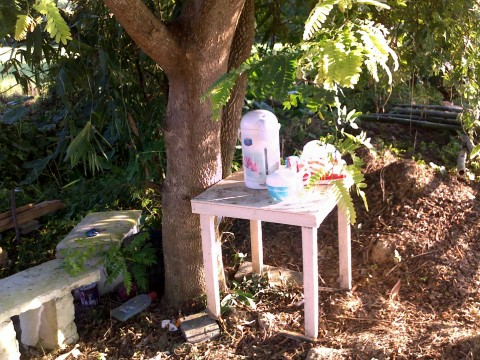 จัดมื้อเช้ามากินในสวน 7 โมงกว่าแดดจ้าเหลือเกิน.....