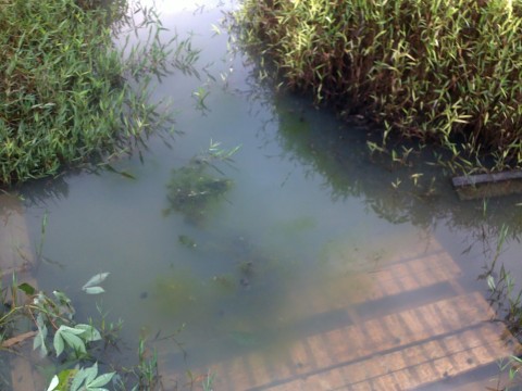 จุดต่อไปที่จะหาคือตรงหน้าบ้านเช่า น้ำเริ่มจะแห้งแล้ว แต่ยังพอมีน้ำขังอยู่ตลอด