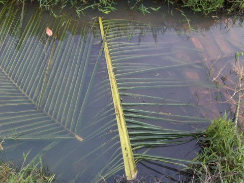 นี่เป็นไม้รองอิฐก้อนที่ซื้่้อมา เอาวางไว้ในน้ำเพราะกลัวปลวก สังเกตุเห็นได้ว่ามีหอยตัวเล็ก ๆ มาเกาะอยู่ แสดงว่าในร่องสวนหอยก็มีอยู่แล้ว