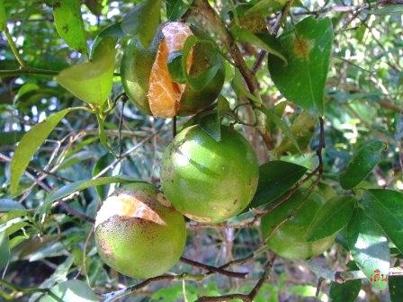 ส้มเขียวหวาน ติดต้นอยู่กว่า๒๐ลูก โดนฝนเมื่อวันก่อน(๓เม.ย.)ยิ้มแฉ่งไปแล้ว๒ลูก