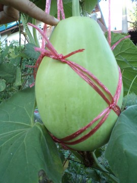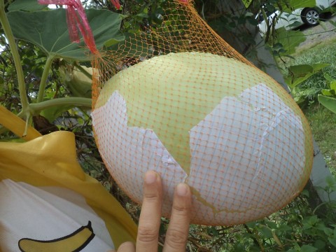 ผลผลิตน้ำเต้ายักษ์จากกระถาง