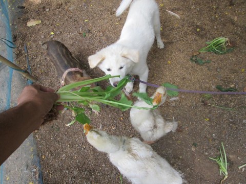 พ่อแม่ห่านของน้องแดงและอ้ายเวทย์ ทำหน้าที่เฝ้ายามให้ไก่ไข่อย่างดีไม่มีใครมารบกวม