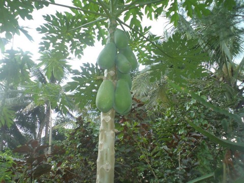 มะละกอก็มีหลายต้น ไว้ทำอาหาร กินสุก และเอื้อเฟื้อเพื่อนบ้าน พืชอีกอย่างที่ทำรายได้ให้ตาจิตร คือมะพร้าว เมื่อได้เวลา เขาก็จะเอาลิงกังมาขึ้นและก็คิดเงินให้ บอกว่าได้ครั้งละ500.- ถึง 1000.- แล้วแต่ช่วง 20 วันเขาก็มาซื้อครั้งหนึ่ง