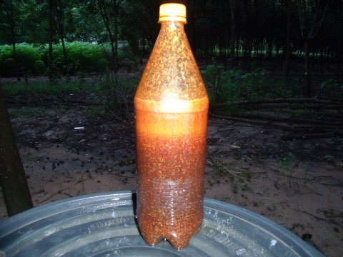 หน้าตาน้ำหมักไข่หอยเชอรี่ครับ หมักได้คืนนึง ไข่ลอยอยู่ข้างบน