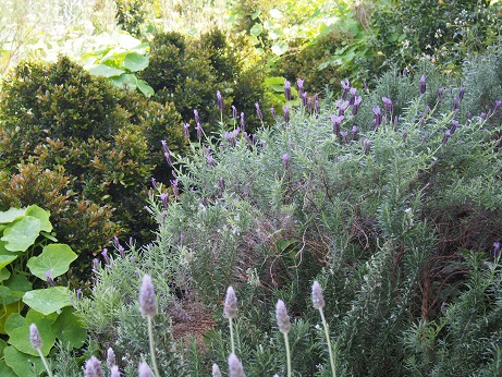 มุมขวามือเป็นดงลาเวนเดอร์ สเปน และ ฝรั่งเศษ ครับ ไม่เหมือน ลาเวนเดอร์ ของอังกฤษ ที่นี่หนาวไม่พอ ปลูกแล้วไม่งามครับ ปลูกได้ แต่แบบทนร้อน เจ้ของผมไม่ท้อ นะครับ พยายามหาสายพันธ์ ลาเวนเดอร์อังกฤษ ลูกผสมแบบทนร้อน ทนลองปลูก อยู่ครับ มามุมด้านซ้ายมือครับ ต้นพุ่มใบเล็กๆ เป็นไม้พื้นเมืองมีผลเล็กๆ ทานได้ ยอดอ่อนแดงๆ รสเปรียวๆครับ เอามาต้มส้มได้ดี ปลูกไว้ประดับเป็นแนวครับ ดูแลง่ายมากๆ