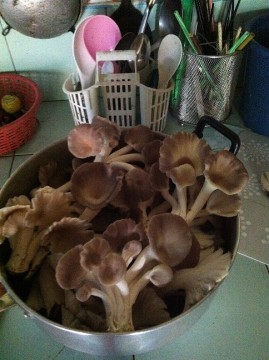 ทุกวันตอนเลิกงานมาก็ต้องมาช่วยงานแต่เรื่องของพืชผักยังปลูกเหมือนเดิมที่ขาดไม่ได้คือ เห็ด เพาะง่ายกินง่ายไร้สารพิษ ผมเพาะเห็ดนางฟ้าครั้งละ 40 ก้อน กินกันทุกอาทิตย์ส่วนผักอื่นๆก็เป็น ชะอม ตอนนี้ปลูกรอบบ้านเลยประมาณ 60-70 ต้น สงสัยโตแล้วกินกันจนท้องเขียวแน่ๆ