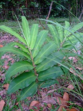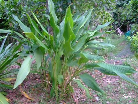 ขมิ้นอ้อยปีนี้สมบูรณ์นักสูงถึงหัว ส่วนด้านขวา ไพลดำ คนละต้นกับกระทือดำ