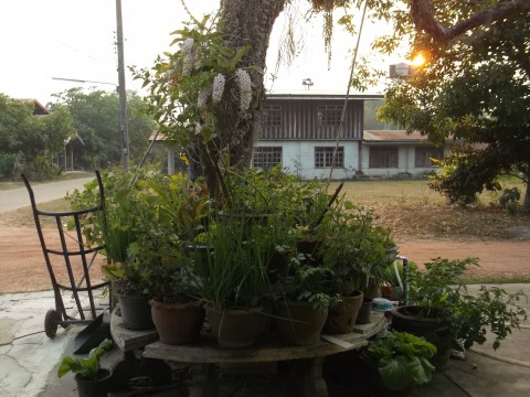 เมื่อก่อนที่ตรงนี้เป็นของพ่อ พ่อปลูกไม้ประดับเต็มไปหมด นานไปแม่ก็แอบเอาผักนั่นผักนี้แอบปลูกลงไป นานวันเข้า จากวันเป็นเดือน เคลื่อนมาเป็นปี ในที่สุดกระถางดอกไม้ของพ่อก็กลายมาเป็นสวนผักของแม่ แม่บอกเสียดายน้ำเสียดายปุ๋ยปลูกดอกไม้มันกินไม่ได้ ปลูกผักดีกว่า