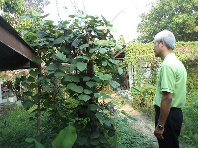 พาเดินตราวจการบ้านค่ะ มีเวลาแค่ 1 ชั่วโมง ต้องตรวจ 2 สวน (เพราะงานจริงๆคือต้องเดินทางไปศรีสะเกษ) อันนี้เป็นถั่วแปบม่วง ให้เมล็ดมา 5 เมล็ด เมื่อปี53 ตอนนี้ก็ปลูกถึงรุ่นลูก หลาน เหลน โหลน รักษาสายพันธุ์เก่งมั้ย มันมีแรงจูงใจ(ขายได้) ถึงรักษาไว้ได้