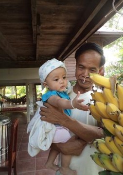 น้องหมอก หลานคนแรกของย่าวรรณ ที่จริงวันนี้นัดกันว่า มาหาน้องหมอก ลงมาจากลำปาง ก็เลยเป็นรวมพลย่อยๆไปเลย เพราะบ้านป้าเล็ก นกก็มา ปิดเทอมแล้ว พี่วิ(สาววาริน) พอรู้ว่า พี่สุรพลมาถึงสวน ก็บอก อย่าเพิ่งกลับนะ จะมาสมทบเดี๋ยวนี้เลย แต่เราก็รอไม่ได้ เพราะไม่มั่นใจว่า จะมาเดี๋ยวนี้นั้น ใช้เวลากี่ชั่วโมง พี่วิถึงจะมาถึงสวน แต่ก็ได้เจอนะ ที่ปากทางเข้าบ้านย่าวรรณ ภาพอยู่กล้องพี่วิ