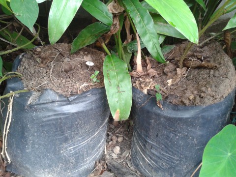 ผ่าแล้วเอามาเพาะในถุง แต่ถ้าขี้เกียจผสมดิน กรอกในถุงก็ต้อง แบบนี้เลยครับ