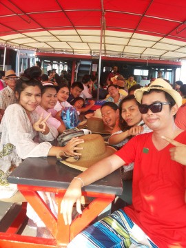 ถึงท่าเรือดอนสัก มีไกด์ที่เราเหมาทัวร์มารับ ขึ้นเรือเฟอรี่ ซีทราน อยู่ในทะเลค่ะ