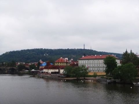 แม่น้ำวัลตาวายามเช้า บรรยากาศเงียบ สงบ จนอยากยืนชื่นชมนานๆ แต่สายลมและสายฝนไม่ปราณีเราเลย ขาสั่น เดินต่อดีกว่า