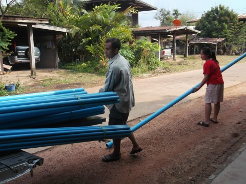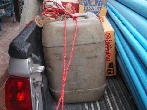 แดงกับอ้ายเวทย์จะเข้าเมืองไปซื้อของ 1-2 อาทิตย์ต่อครั้ง ทุกครั้งที่ไปก็จะซื้อแก๊สโซฮอล์มาด้วย ไว้ใส่มอเตอร์ไซค์ ใส่เครื่องตัดหญ้า เพราะในหมู่บ้านมีแต่ปั๊มหลอดที่ขายแต่น้ำมันเบนซิน ลิตรละ 48 บาท เราซื้อแก๊สโซฮอล์มาจากในเมืองประหยัดได้ตั้งหลายบาท ประหยัดได้เราก็ประหยัด