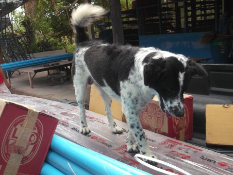 พี่หมี วันนี้ไม่ให้ช่วยขนของ เพราะไม่มีของชิ้นเล็ก ๆให้ช่วยขน แต่คงไม่เชื่อเลยโดดขึ้นมาดูเองเลยว่าทำไมพ่อกับแม่ไม่ให้ช่วย