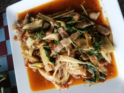 วันนี้ป้ายา ต้มหน่อไม้แล้วตักมาหน่อยหนึ่งทำเมนู ผัดกะเพราพริกแกง อร่อยจริงๆค่ะน้องแดง ที่เหลือจะแพทใส่ถุงใส เวลาต้องการแกง ก็ใช้ที่ละถุงแกงแต่พอกินค่ะ