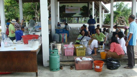 ตรงนี้มีขนม มะละกอสุก กล้วยค่ะ และในกล่องสีฟ้านั้น คือข้าวหมาก ลูกชายหล่ากินไป 13 ห่อ เพราะว่ามันอร่อยมากๆ และอีกอย่างคืออย่างอื่นมันเผ็ดค่ะ