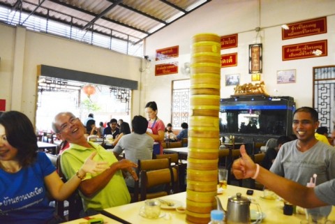 ไม่ไกลจากบ้านพี่โสทรมาก ก็มีร้านอาหารใหญ่ รสชาติขึ้นชื่อ ประจำจังหวัดตรัง อยู่ร้านหนึ่งค่ะ เป็นร้านหัวมุมสองห้อง ติ่มซำที่นี่ เยอะมาก หมูย่างก็มี มีปลาท่องโก๋ขายหน้าร้านด้วยนะ แต่ละคนที่แวะเข้ามา ดูเหมือนจะเป็นนักท่องเที่ยวทั้งนั้นเลยค่ะ