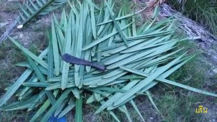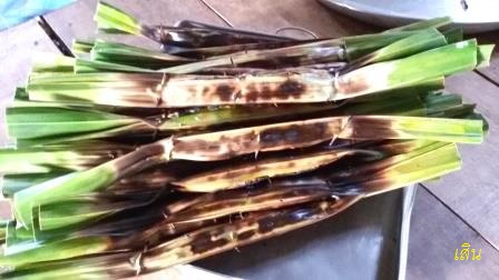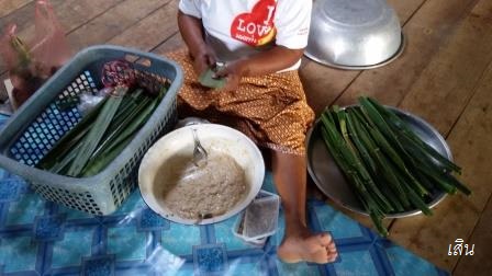 ใบจาก จากกอขอบบ่อปลาหลังบ้านแม่ พร้อมแป้งจัดเตรียมไปห่อและย่างกินในงานก็ไม่ได้ทำเหมือนกัน