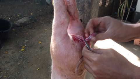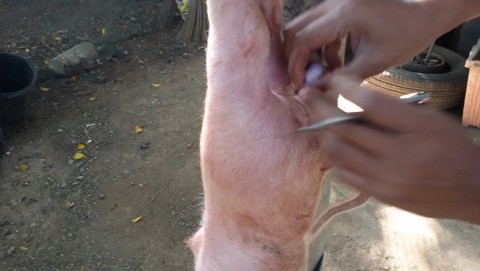 วันนี้ดูโหดๆไปหน่อยนะแต่ว่านำไปใช้ได้สำหรับพี่น้องที่ต้องการเลี้ยงหมูแบบปลอดสาร คือการตอนหมูโดยไม่ใช้ยาซึม ใช้เวลานิดเดียวไม่ถึง30วินาทีด้วยถ้าเป็นแล้ว