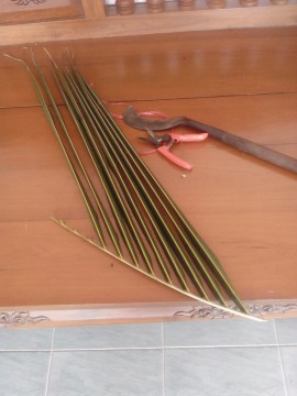 อุปกรณ์ ... มีด หรือ ของมีคม ที่คม ๆ (ปฏิทินถึงแม้จะมีถึง 7 คม แค่ไม่ต้องใช้) ... หากมีกรรไกรตัดแต่งด้วย ก็สะดวกนะ แต่ไม่มีก็ไม่ผิดกติกาใด ๆ ... อ้อ ... เชือกสำหรับผูกด้วย จะเป็นเชือกอะไรก็ได้ ดูให้เหมาะก็ละกัน ... แฮะ ๆ ๆ ลืมเอามาเข้ากล้อง