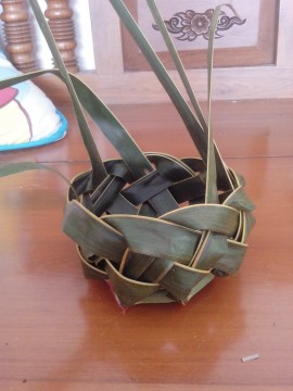 ขอบคุณครับ ที่เจตนาไม่เห็นหมัน ... หากจะให้ใบใหญ่กว่านี้ ก็เพิ่มจำนวนใบมะพร้าวครับ และหากจะดัดแปลงเป็น ถาดผลไม้ หรือ กระจาด ก็สานวิธีเดียวกัน ... เพียงเพิ่มจำนวนใบ แล้วกลับด้านใบเข้าไว้ในวงก้น จากนั้นสานลายเดิม แต่วนทางเดียวกับทางที่ใบชี้ไป ... ลองดูซีครับ