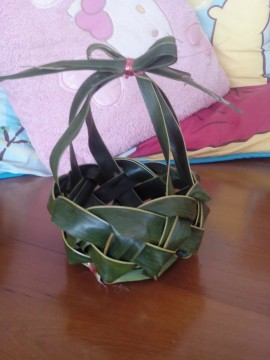 เอ้า ... เป็นอันจบลงได้ซะที สำหรับวิธีการสาน กระเช้าเก๋ไก๋ จากใบมะพร้าว