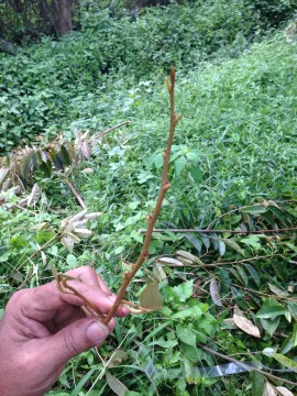 - กิ่งพันธุ์ใหม่ ที่ใจปรารถนา อยากได้มาแทนพันธุ์เดิม ... อันนี้ ต้องพิถีพิถัน กันหน่อย เพราะเดี๋ยวออกมาไม่ได้ดั่งใจ จะเกิดทุกข์ซะเปล่า ๆ คือ ต้องเลือกยอดที่สมบูรณ์ ที่ไม่แก่ หรือ อ่อนจนเกินไป ... ปลายยอดพร้อมที่จะแตกยอดอ่อนมาให้เราชื่นใจ ภายในไม่เกินสองเดือน ... มีตา (ก้านใบ) เยอะหน่อย ซึ่งหากตาเยอะ ๆ เขาคงแตกยอดใหม่ให้ซักยอดซีน่า ... เจอแล้วใช้อาวุธคม ๆ ตัดให้ยาวไว้หน่อย แต่ไม่ต้องเอาทั้งกิ่งนะ เดี๋ยวบรรจุลงถุงไม่ได้ ...