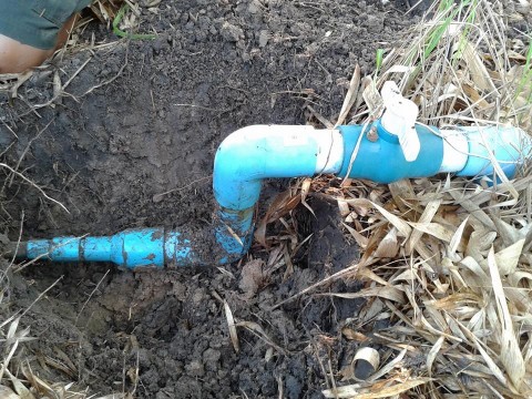 ระบบประปาในสวนต้องตรวจตราอยู่บ่อย ๆ อย่างเช้านี้ท่อแตกก็ต้องให้อ้ายเวทย์มาช่วยซ่อม