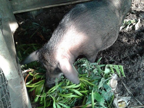 ต้นกล้วยที่ตัดเครือออกแล้ว นำไปเป็นอาหารหมูได้