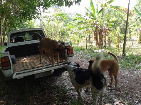 วันหยุดสงกรานต์แดงกับลูก ๆสามตัว จะมาสวนทุกเช้า เริ่มตั้งแต่หกโมงเช้า สายหน่อยแดดแรงก็กลับบ้าน การปลูกผักก็จะปลูกรอบ ๆโคนต้นไม้