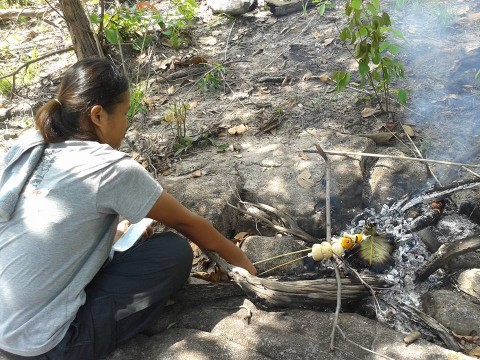 เก็บได้พอกินก็พักเหนื่อย พ่อกับแม่บอกว่า ที่นี่ไม่เหมาะที่จะกินข้าวป่าเพราะน้ำไม่มี ปีนี้แล้งกว่าทุกปี เราต้องไปต่ออีกหน่อย