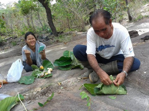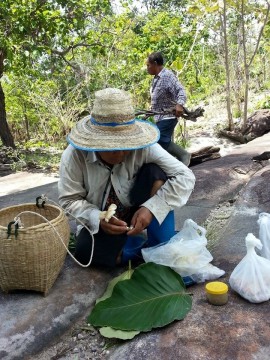 สองตายายจะแอบมากินข้าวป่าประจำ บอกกินที่บ้าน มันบ่แซ่บคือมากินอยู่ป่า เวลามาก็จะห่อมาแค่ ข้าวเหนียว เกลือ พริก ปลาร้า กับข้าวมาหาเอาเองในป่า