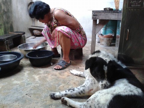 แม่กับพ่อช่วยกันทำข้าวต้มผัด