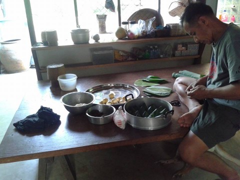 คนนี้เป็นคนห่อ ก็ต้องห่อตามก้อนที่ปั้น ใหญ่มากกินห่อเดียวนี่จุกเลย แต่ก็อร่อยมาก คราวหน้าต้องมีอีก ใส้มะพร้าวกาแฟ
