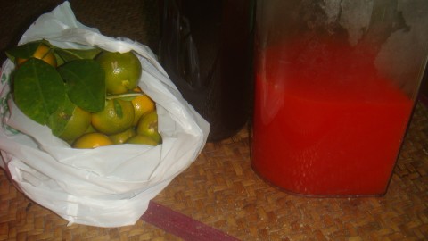 อีกทั้งมีน้ำผึ้งป่าจากอำเภอพิปูนอยู่ขวดหนึ่ง กับส้มจี๊ดขอจากเพื่อนบ้าน