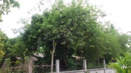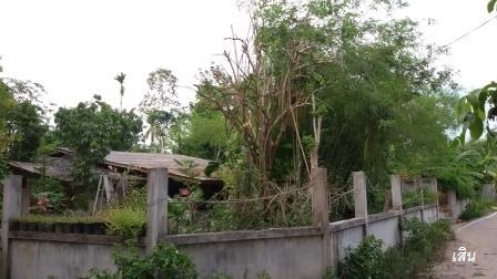 ต้นฉิ่งข้างกำแพงรั้วบ้าน ต้นนี้ผลไม่อร่อย เนื้อแข็ง ก็ตัดออกเหมือนกัน