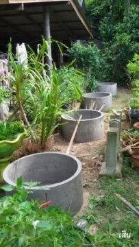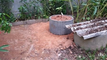 จุดสุดท้ายข้างโรงรถ บริเวณนี้ย้ายผักออกไปวางที่อื่น จัดระเบียบกันใหม่ก็วางท่อได้หลายท่อ