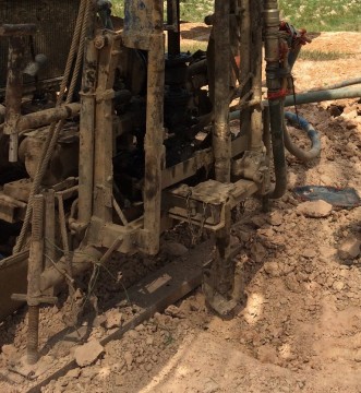 หลังจากผ่านการเจาะมาหลายชั่วโมง ผมเข้าใจว่าน่าจะอยู่ที่ระดับความลึก 18-20 เมตร รู้สึกว่าช่างขุดเจาะกำลังเจอกับปัญหาชั้นหินดินดาล กล่าวคือหัวเจาะไม่สามารถเจาะลงไปได้ มีการขึ้นไปนั่งบนแท่น มีการขย่ม และผมเห็นเขาก็เอาปูนขาวเทลงในบ่อพักน้ำเพื่อผสมน้ำทำให้เป็นน้ำโคลนมีลักษณะเหนียว (คาดว่าจะใช้สำหรับหล่อลื่นหัวเจาะ) เครื่องก็สั่นสะท้านอยู่ตลอดเวลา